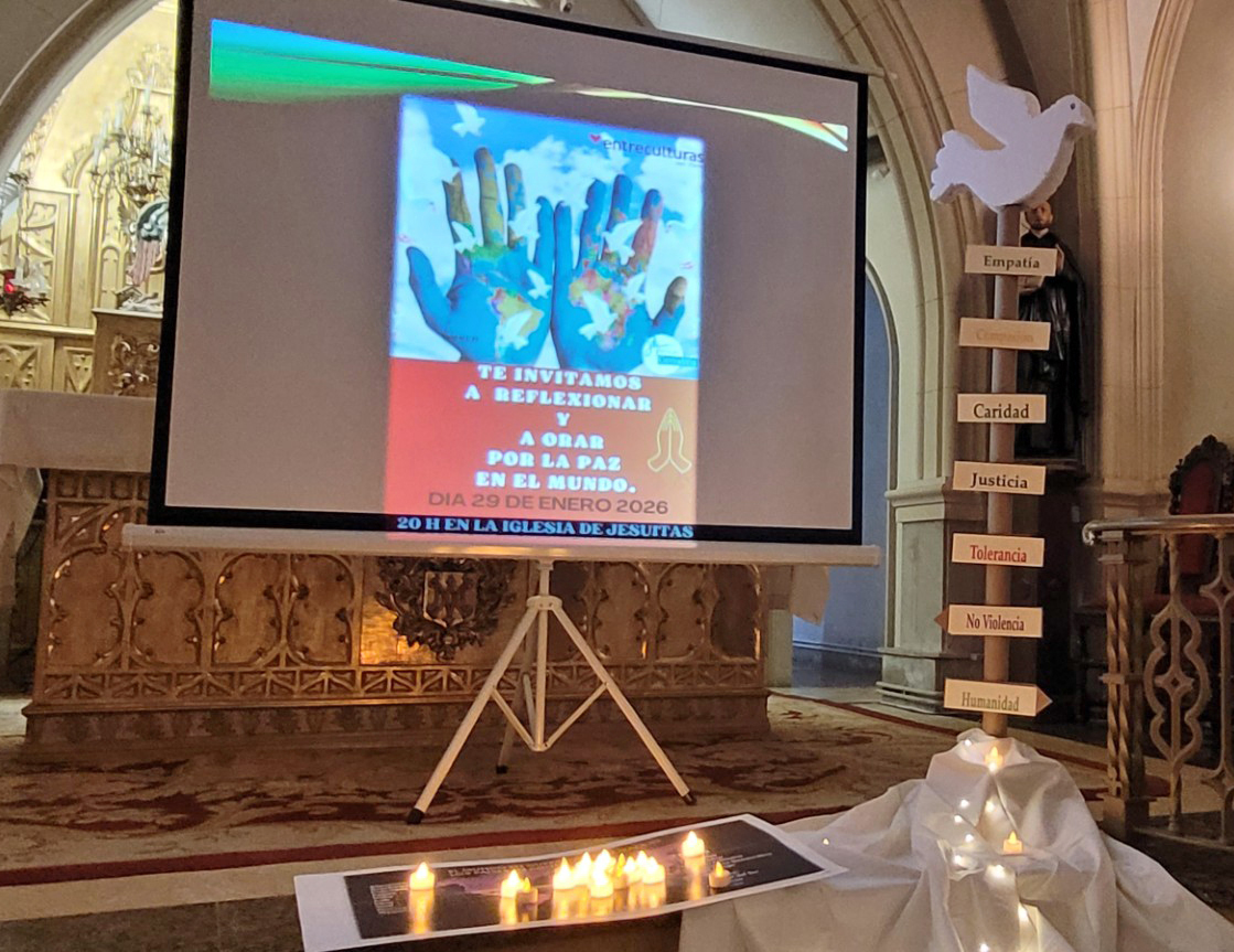 Con motivo del Día de la Paz, el viernes 29 de enero, a las ocho de la tarde, un pequeño grupo del Centro Loyola y de la ONG Entreculturas se reunió en la capilla de la Providencia, en la iglesia del Sagrado Corazón (Jesuitas). Fue un encuentro sencillo, sin grandes pretensiones, para compartir un tiempo de silencio, reflexión y oración.
